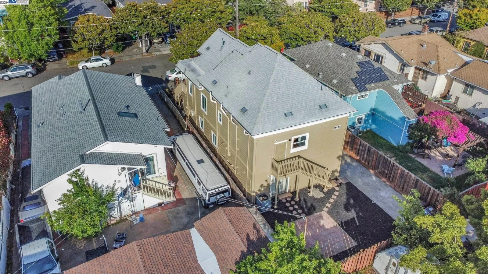 Nestled in Oakland’s coveted Golden Gate neighborhood and situated on a beautiful Magnolia Tree-Lined street. This property is the epitome of versatile living boasting a 3 bed 3 bath main unit and 2 bed 1 bath secondary unit. Both units have recently remodeled kitchens and bathrooms, new floors, fresh interior/exterior paint, appliances and new plumbing/electrical fixtures. A rare sighting of an Oakland property with Air Conditioning! Separately metered for gas/elect, the main unit also benefits from solar energy with its “owned” solar panels. Ready for EV charging. Ready for immediate occupancy. The existing floor plan may allow an additional 3rd unit without much reconfiguring. The property features a long driveway, a very special feature that most homes in this neighborhood just don’t have. The backyard is flat and a nice blank canvas for your creation. With a “walk score” of 84/100, many errands can be accomplished on foot, also many nearby public transportation options and flat enough to bike to Emeryville’s Bay Street, Berkeley’s 4th St Shops and Restaurants, UC Berkeley Campus and Oakland’s Uptown. 5531 Fremont St is in close proximity to many freeway arteries such as 80/580/24 and the Bay Bridge.